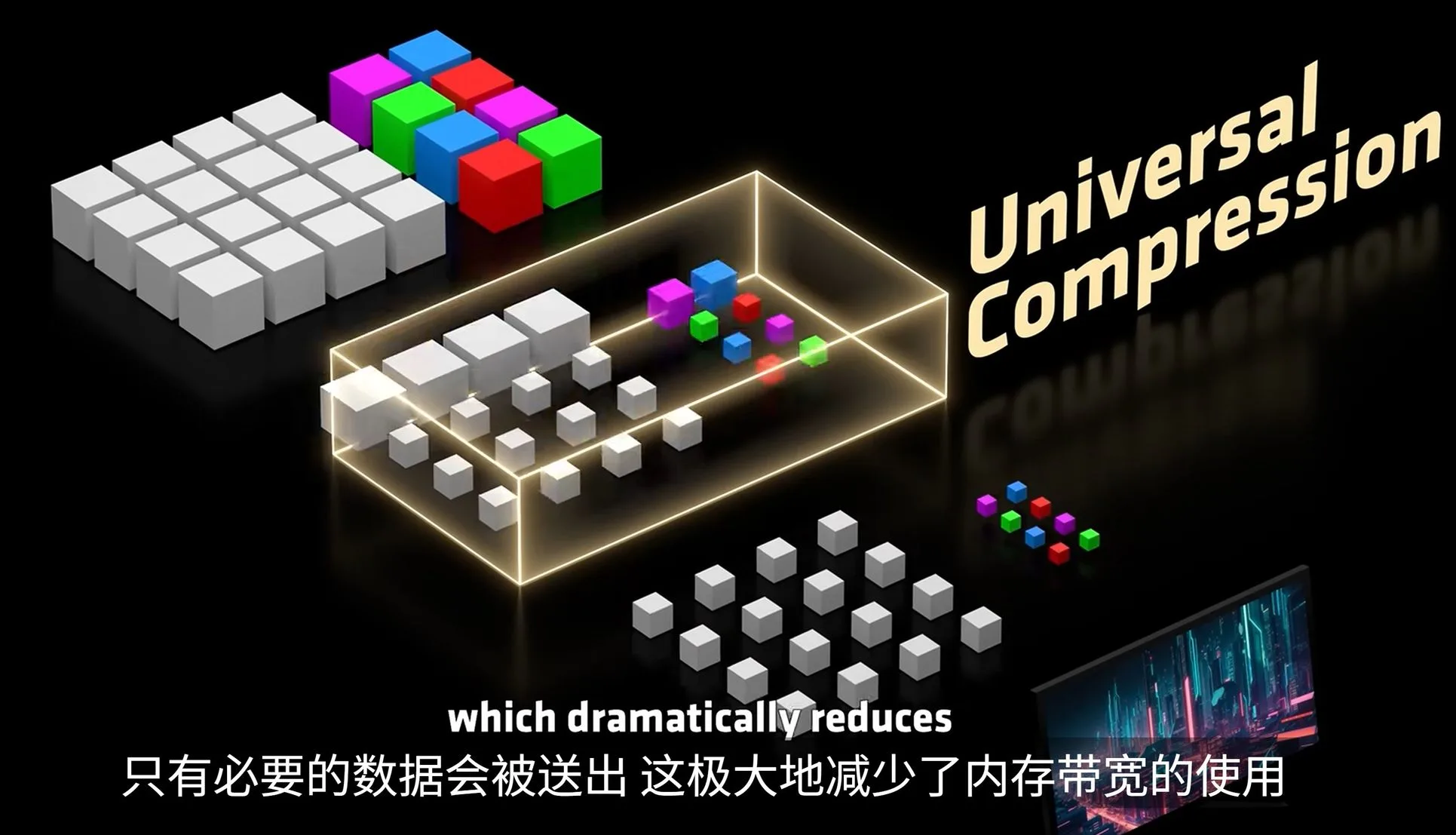 - Universal Compression(通用压缩技术):全新压缩系统,可智能评估并压缩GPU内的全部数据,大幅降低显存带宽占用。