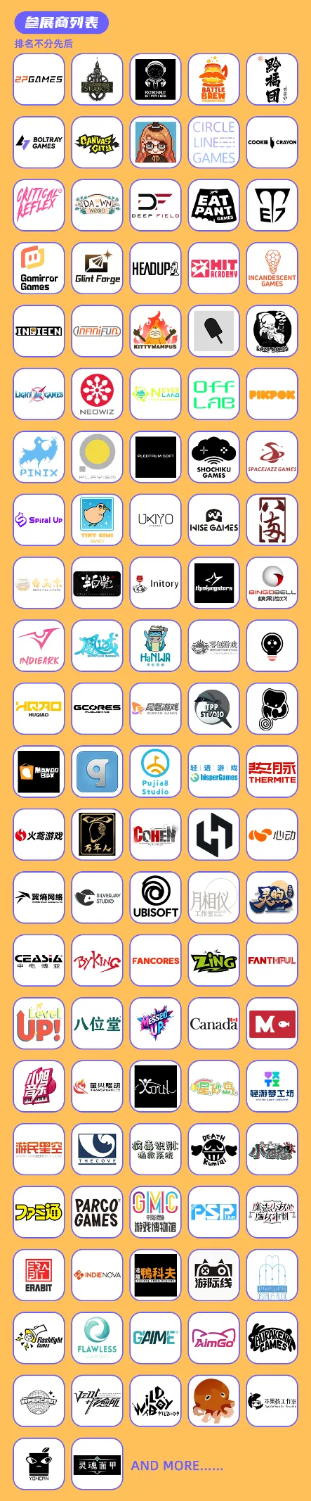 2P、Gamirror、GSE、indieark、indienova、Infini Fun、TapTap、NeverLand、百家合、杉果、热脉、轻语游戏、心动、游民星空等……中国国内的主要开发者与发行商每年在这里聚集!带来一整年的游戏荟萃!