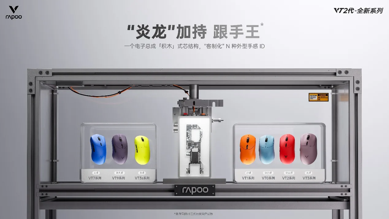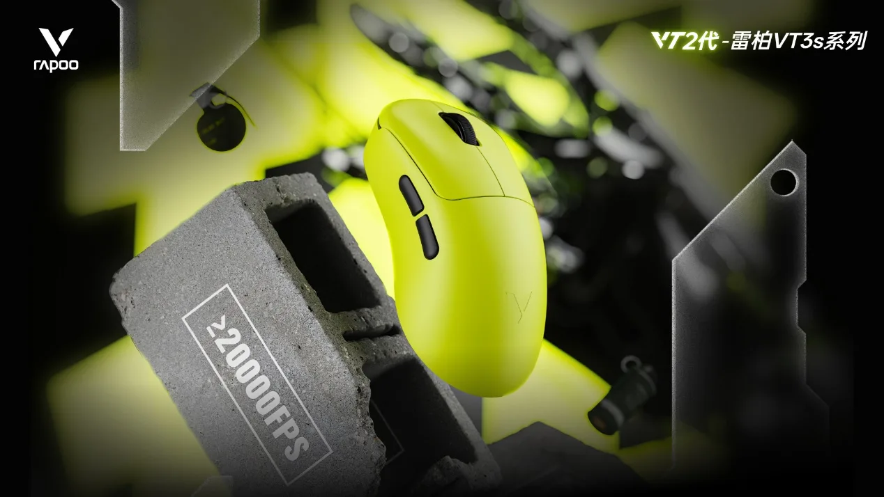 跟手王!雷柏VT二代无线电竞鼠标199元起,超越千元级性能。7种模具适配全手型,搭载“炎龙”固件与全球首发Nordic 54 芯片,支持原生双8K,续航达750小时,超2w高扫描帧率及≤0.225ms无线按键速度,解锁赛级电竞体验!