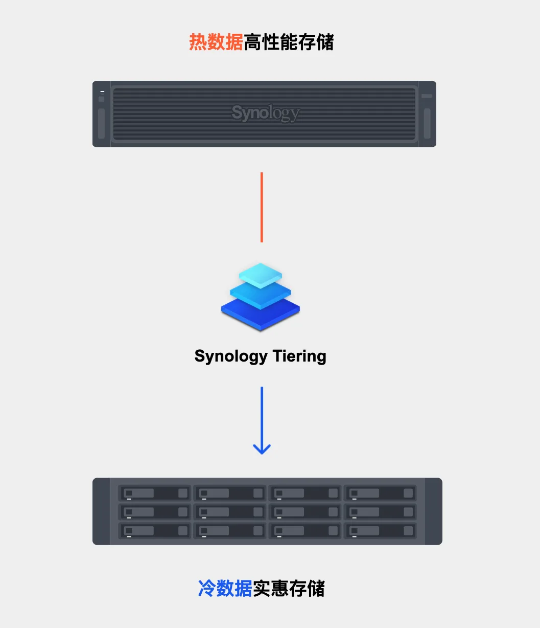 在存储管理方面,DSM 7.3引入了Synology Tiering分层存储机制。该功能能够根据数据访问频率进行自动分配,高频访问的“热数据”会被存放在高速硬盘中,而低频访问的“冷数据”则转移至普通硬盘,以此在性能与成本之间取得平衡。