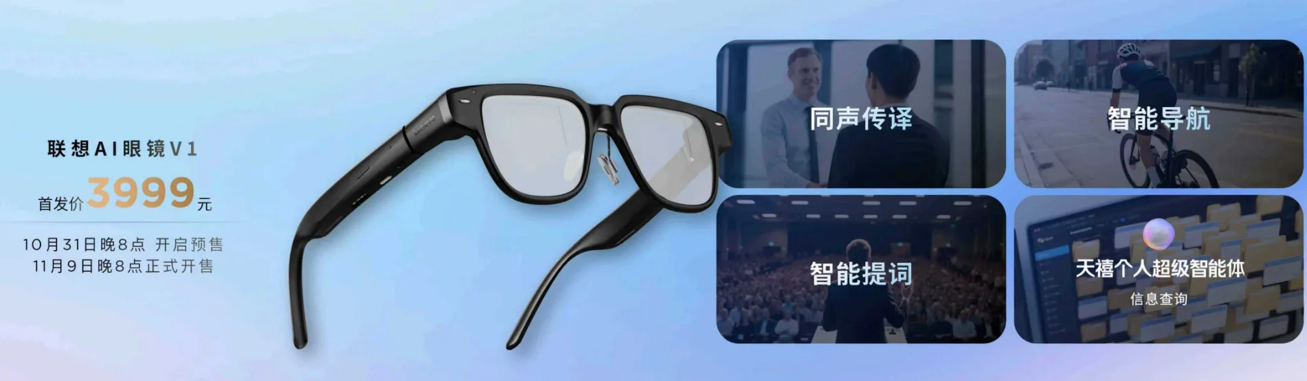 联想(Lenovo)推出全新智能穿戴设备——AI眼镜V1,售价3999元,将于11月9日开售。与传统音频眼镜不同,这款产品具备显示功能,定位在智能眼镜的全新应用场景。