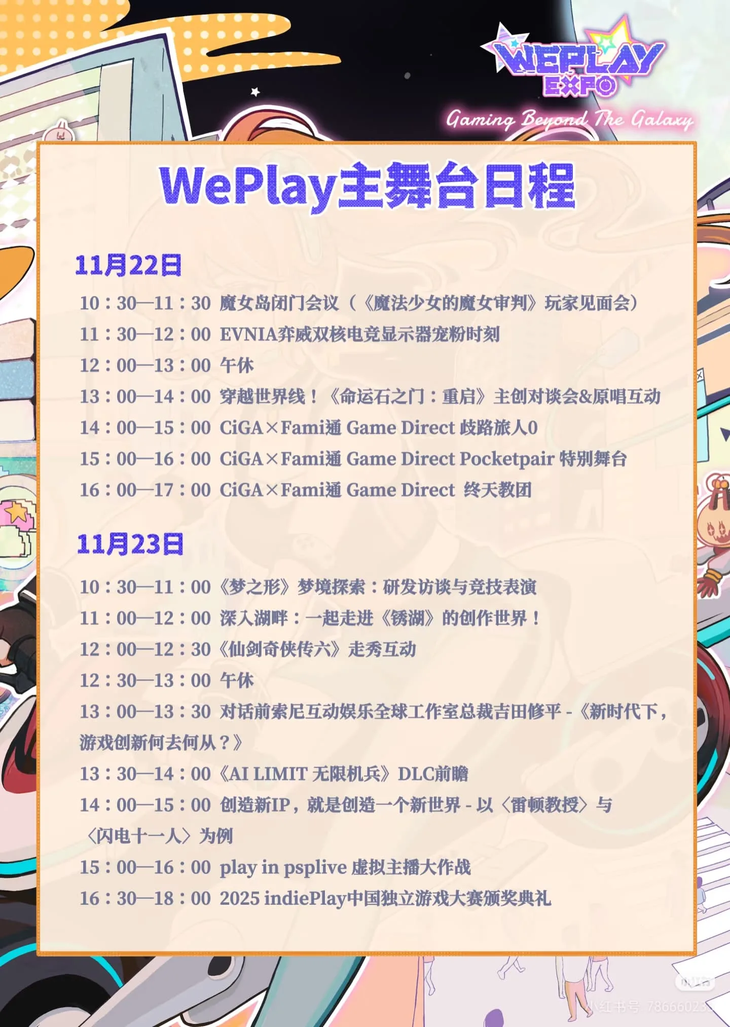 2025 WePlay 文化展将于本周末(11月22~23日)在 上海世博展览馆 H3 馆 举办,杉果与中电博亚(CEASIA)将在 H3 馆 A19 展台 带来 9 款作品的试玩活动,并有周边赠送。在11月23日13:30的舞台活动中,游戏制作人还将对《无限机兵》DLC内容展开前瞻内容,欢迎广大玩家到场亲身体验观看。