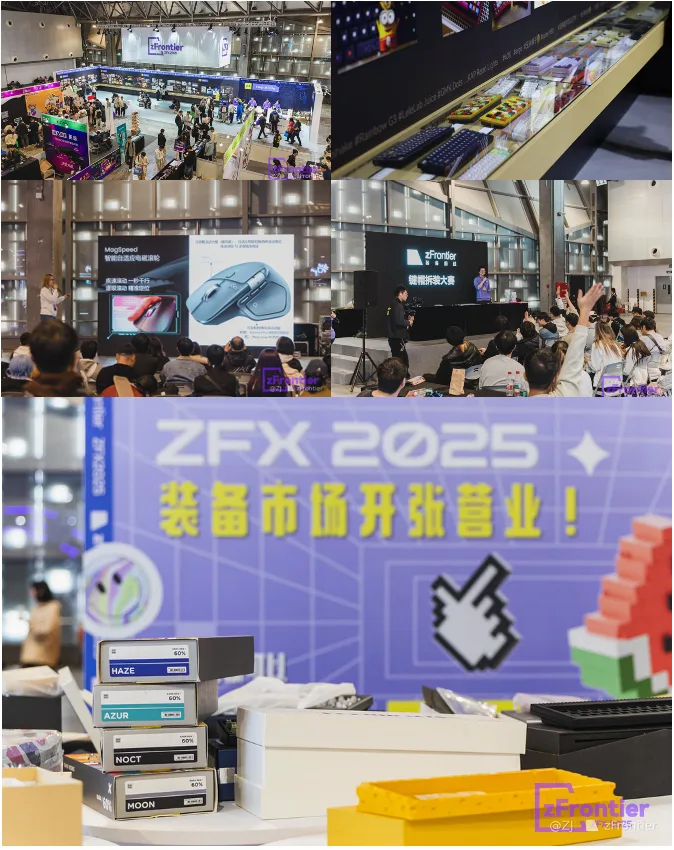 今年WePlay和zFrontier装备前线共同合作将活动升级为WePlay & ZFX 2025,在ZFX区域内70余家品牌参与其中,涵盖了量产键盘、客制化键盘及相关配件、鼠标、鼠标垫、PCDIY、人体工程学桌椅、氛围灯、桌面3C数码配件以及多个综合类目品牌。舞台区域带来展商的装备发布与介绍,以及丰富的活动装备市场则给到用户线下交流装备的平台。