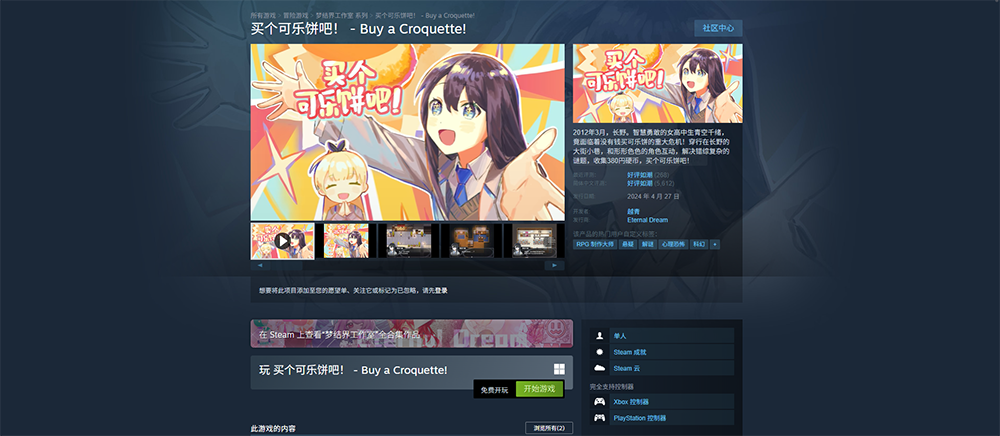 百合子:大家好!我是百合子,梦结界工作室的负责人,同时也是《买个可乐饼吧!》的发行负责人。这次采访会由我和越青(本游戏的制作人,也是最重要的剧本负责人)一起进行,其中制作相关的内容由越青来介绍。