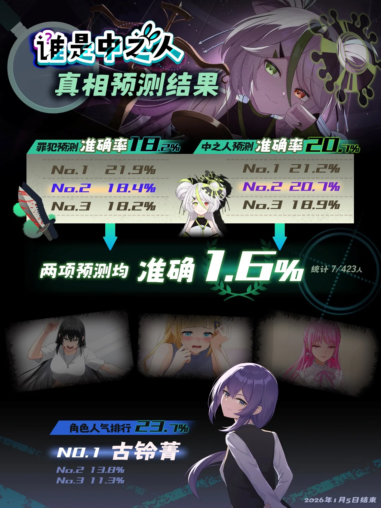 制作团队同时公开了一份来自游戏Demo的统计:在433份问卷中,仅有7人成功预测事件真相,正确率仅1.6%。